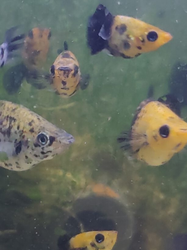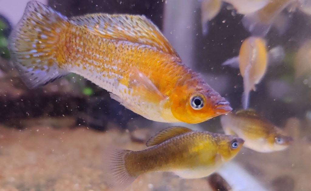 Fun Fact: Mollies love plants, and will peck at the leaves to eat the algae growing on them. Make sure they have live plants and hiding spots they can relax in.
